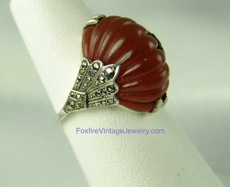 Rings - Art Deco Carved Carnelian Marcasite Ring - SOLD!