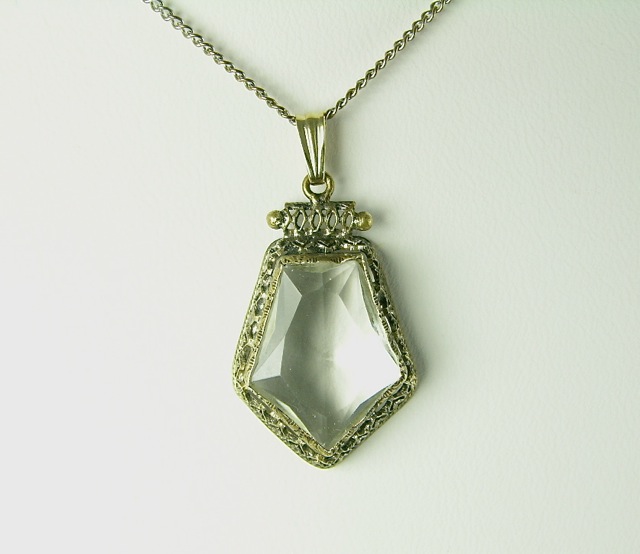 Vintage Filigree Clear Glass Pentagon Pendant