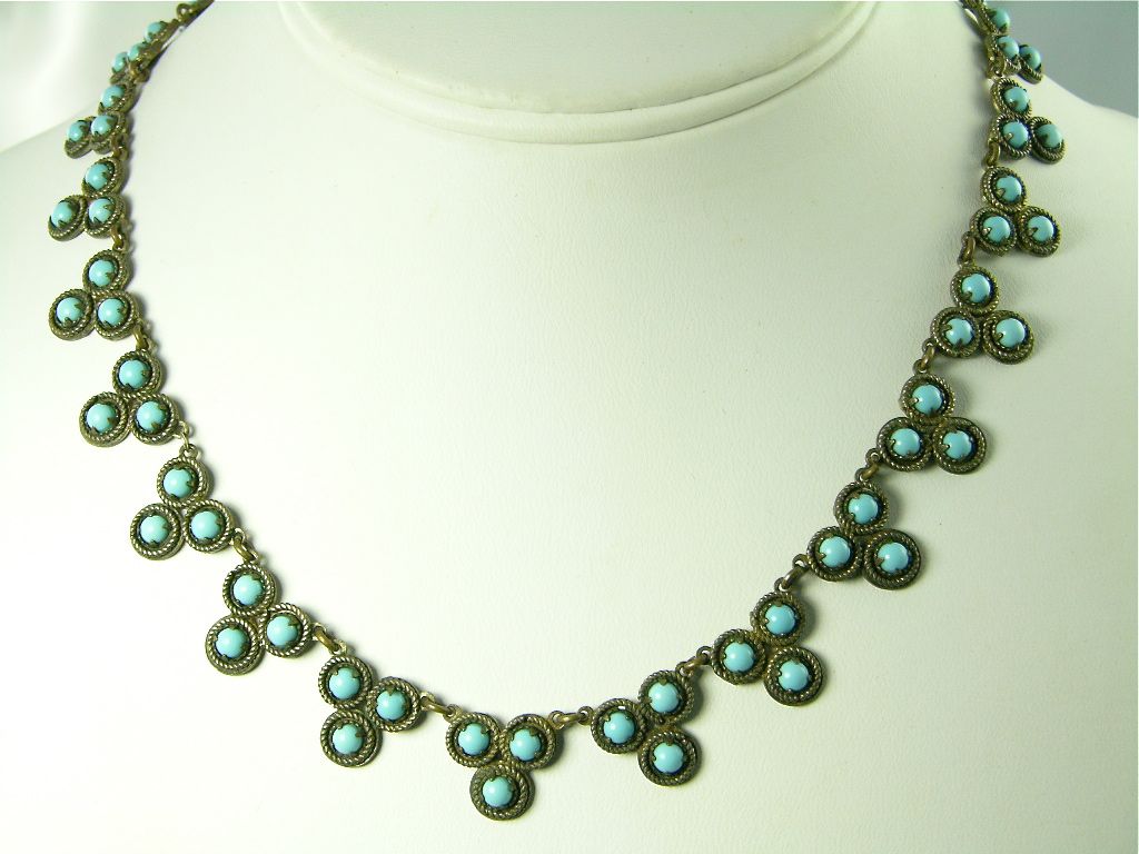 Stunning vintage French turquoise and copper choker necklace is a delicate yet substantial